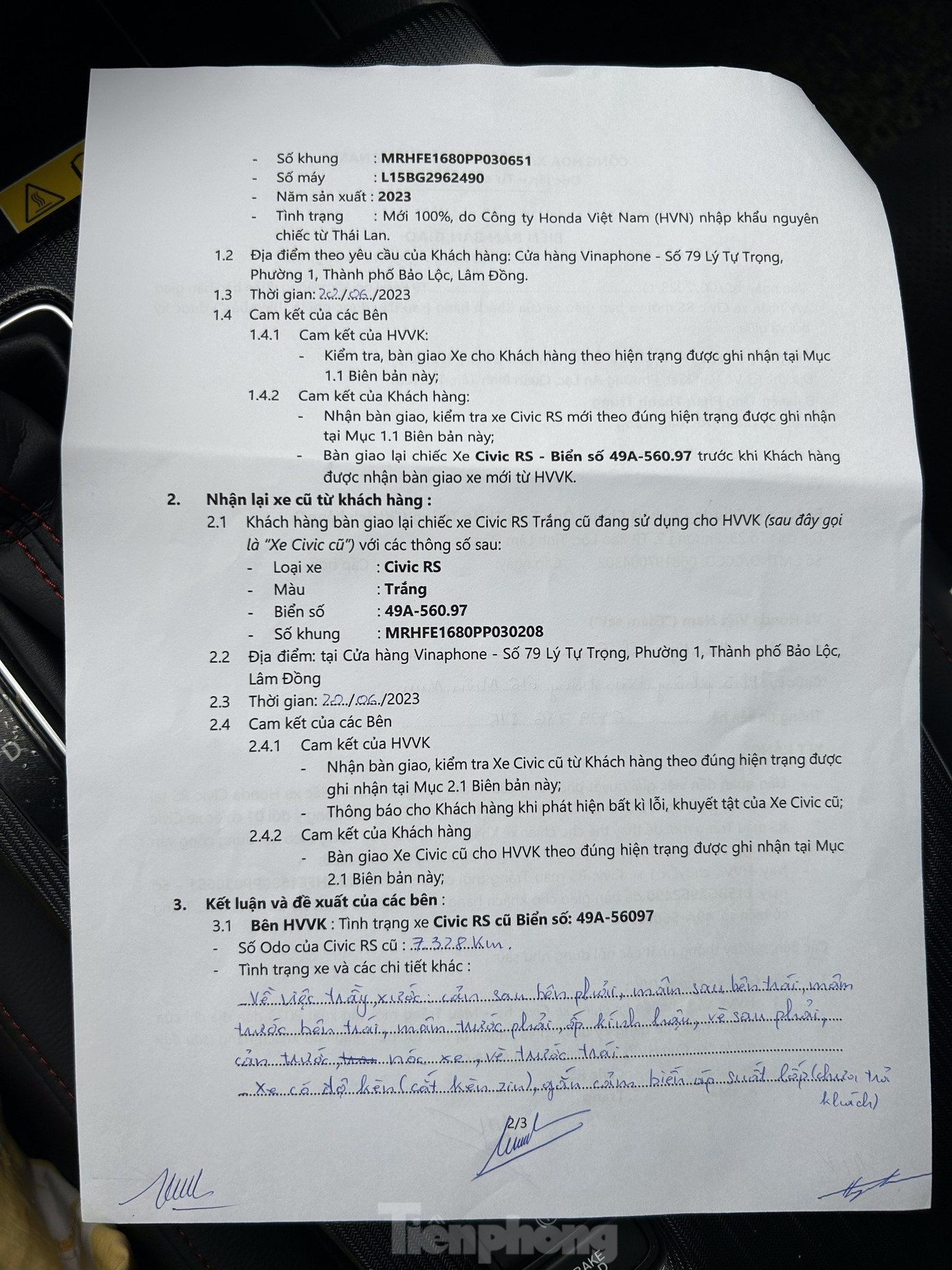 Theo hồ sơ vụ việc, anh Thông mua chiếc Honda Civic RS màu trắng, sản xuất năm 2022, nhập khẩu Thái Lan tại đại lý Honda Phước Thành (số 63 Võ Văn Kiệt, Thành phố Hồ Chí Minh) vào tháng 2 năm nay.