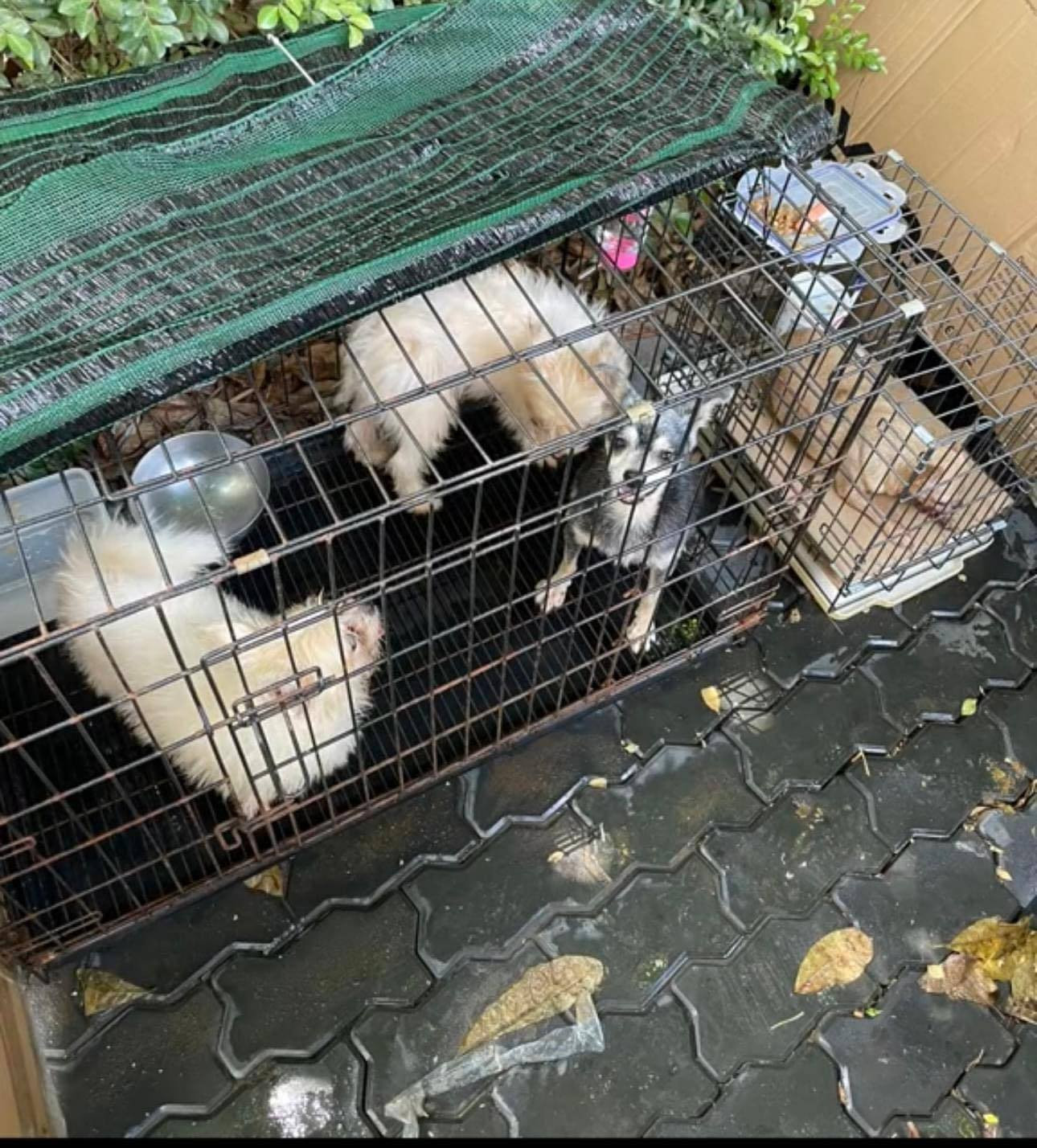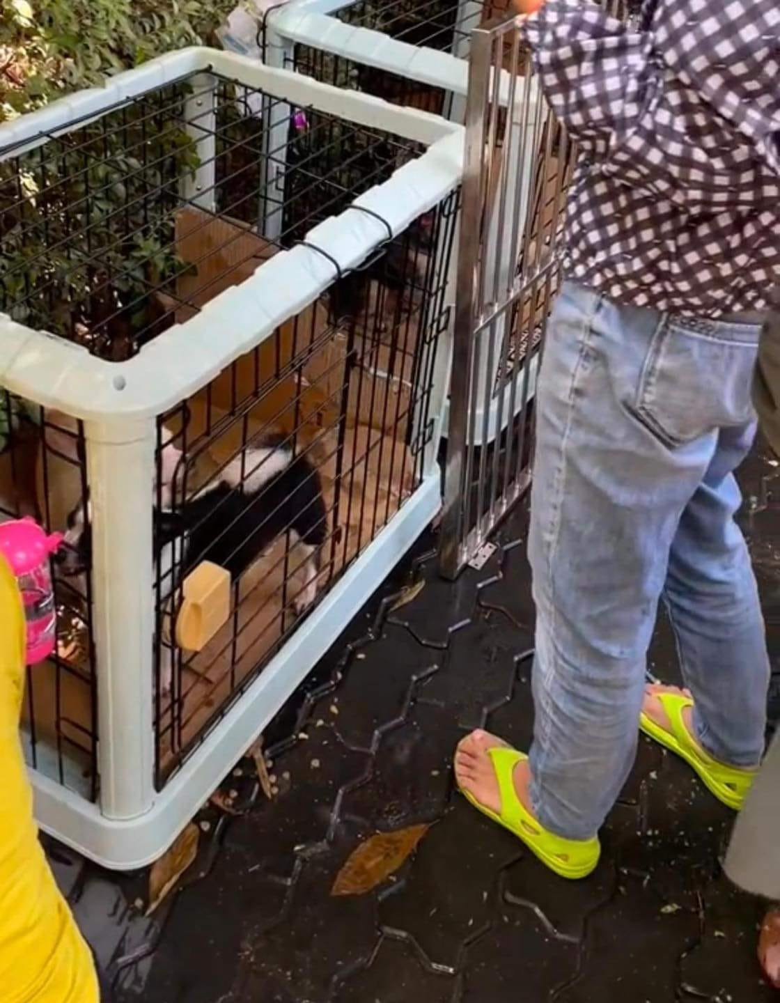 Vì thương xót 19 chú chó trơ trọi giữa trời nắng nóng, người dân sống gần đó đã thay nhau chăm sóc và cho chúng ăn uống. "Từ tối 2/4, tôi đã thấy 19 chú chó được đặt ở đây và nhiều người vây quanh. Buổi tối đàn chó vẫn còn sủa nhưng sáng đã không sủa nữa, chắc do chúng mệt. Chúng bị nhốt trong lồng giữa trời nắng trông rất tội. Cũng may dân cư ở đây hỗ trợ chăm sóc nên đàn chó được tiếp sức" - một người dân sống tại tòa chung cư này chia sẻ.