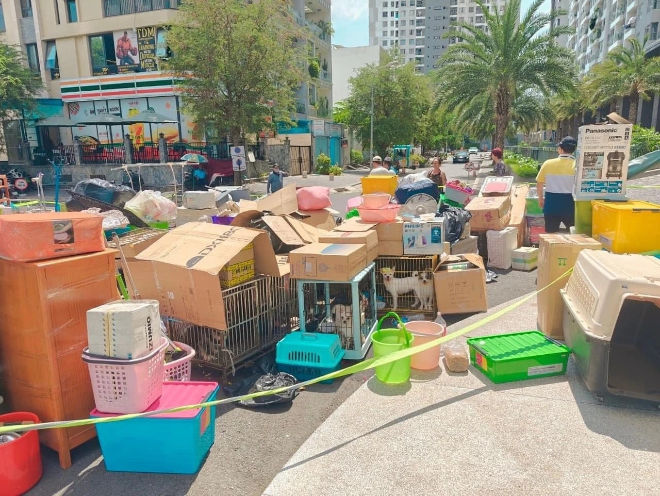 Đến buổi chiều 3/4, chủ nhân của 19 chú chó - chị N.P. (35 tuổi) - trở lại chung cư, sau đó gọi xe đến để vận chuyển đàn chó cùng với đồ đạc của mình đi.