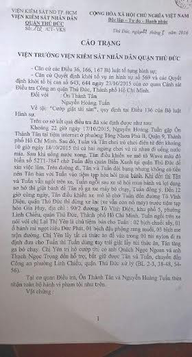 Theo định giá tài sản trong tố tụng, số đồ ăn này có tổng giá trị 45 nghìn đồng. Cả hai bị tạm giam từ ngày 18/10/2015. Sau đó, VKSND quận Thủ Đức ra cáo trạng truy tố hai bị can Ôn Thành Tân và Nguyễn Hoàng Tuân về tội cướp tài sản theo Điểm d Khoản 2 điều 136 Bộ Luật hình sự (khung hình phạt 3 – 10 năm tù).