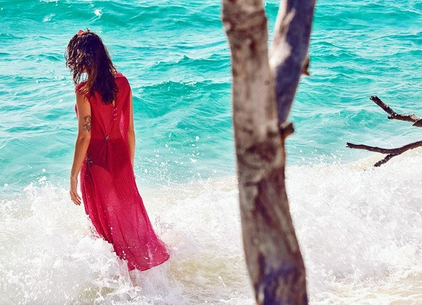 "Cô dâu mới" khoe hình thể tuyệt mỹ trên bãi biển Maldives.