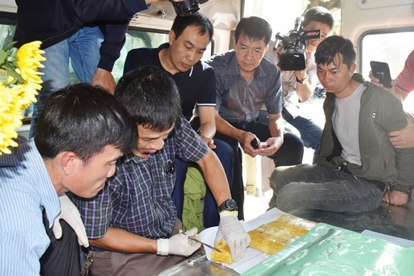 Công an thu giữ tại chỗ 70 gói là ma túy tổng hợp (bên trong có chứa khoảng 14.000 viên ma túy tổng hợp là hồng phiến). Đặc biệt, toàn bộ số ma túy “khủng” này được ngụy trang tinh vi trong tiểu sành chuyên chứa hài cốt cải táng để vận chuyển trên một xe tang chuyên dụng.