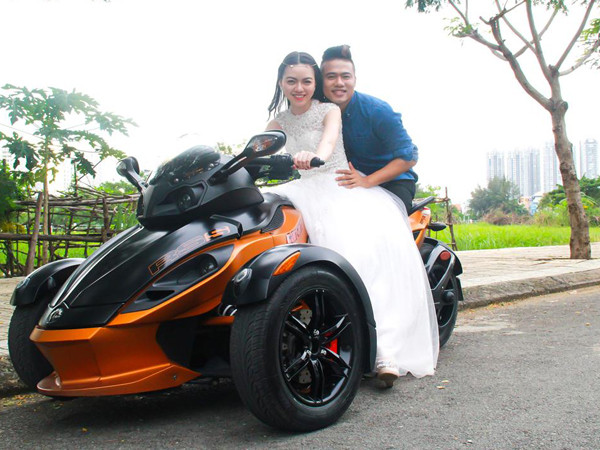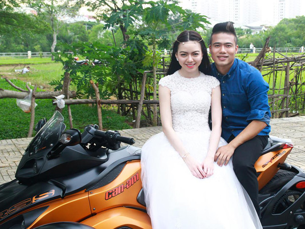 TPO - Nữ người mẫu diện váy cưới trắng tinh khôi, tạo dáng vô cùng tinh nghịch bên chiếc mô-tô 'khủng' của chàng 'người yêu tin đồn' Ngọc Minh Idol.