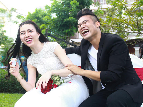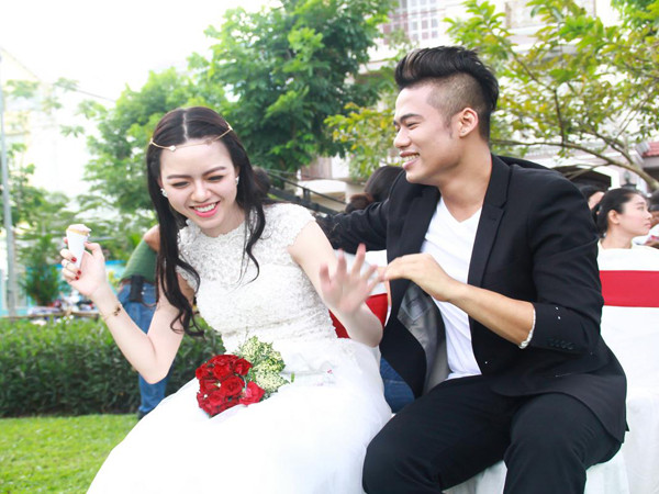 Hình ảnh Vũ Hoàng Điệp mặc váy cưới bên Ngọc Minh Idol: