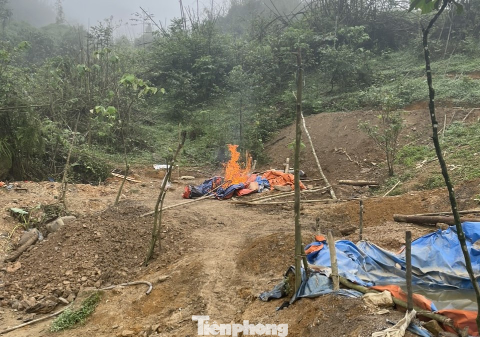 Sau khi kiểm tra, huyện Văn Chấn đã huy động lực lượng tháo dỡ, tiêu hủy toàn bộ 3 lán trại. Đồng thời, tháo dỡ hệ thống bể nước, dụng cụ phục vụ cho hoạt động khai thác khoáng sản trái phép.