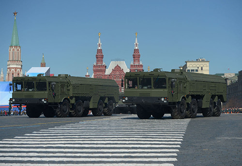 Tổ hợp tên lửa chiến thuật "Iskander-M" trong buổi tổng diễn tập duyệt binh Ngày Chiến thắng.