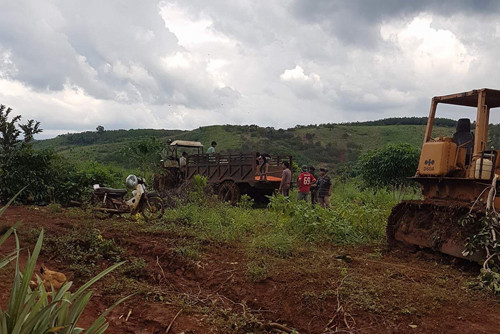 Những máy móc, thiết bị Công ty Long Sơn dùng để san ủi vườn điều của ông Thắng. Khu đất này đã xảy ra tranh chấp giữa hai bên trong suốt thời gian dài nhưng chưa được giải quyết triệt để. Trong khi gia đình ông Thắng cũng có căn cứ cho thấy đây là đất canh tác hợp pháp của mình.
