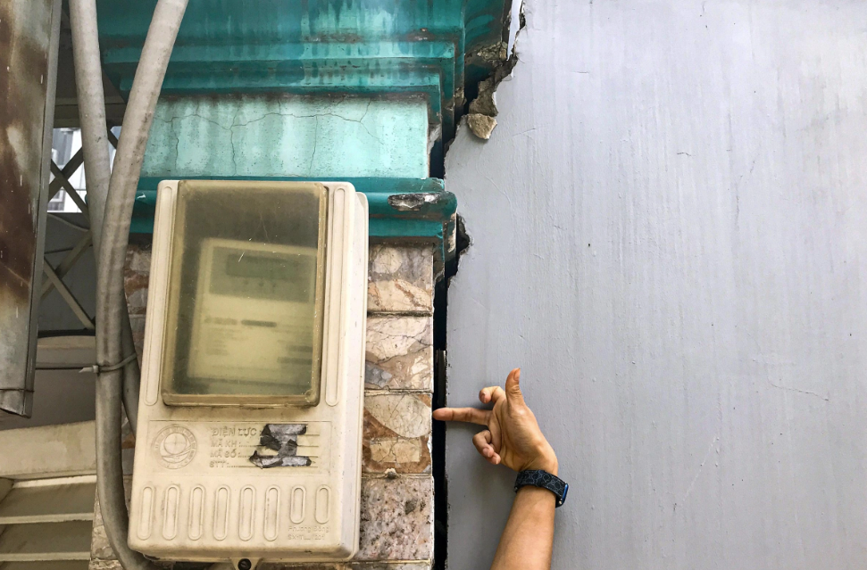 Một kiến trúc sư xây dựng từ Hội Quy hoạch Phát triển đô thị TPHCM cho biết, phương án trám các vết nứt mà đơn vị thi công định làm cho nhà dân chiều 2/10, là "không có ý nghĩa" gì.