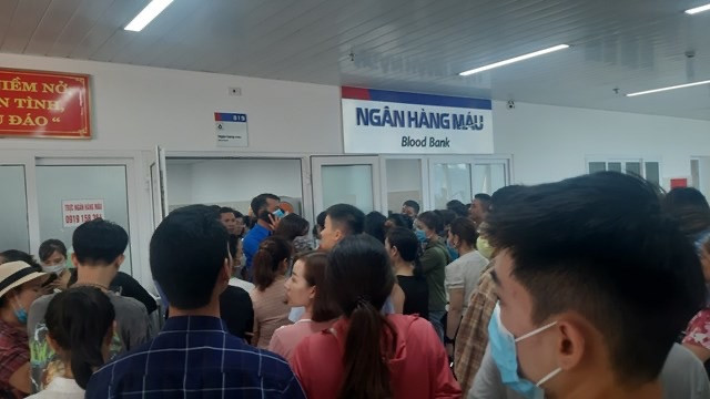 Hàng trăm đoàn viên thanh niên trong và ngoài câu lạc bộ "Ngân hàng máu sống" đã đến bệnh viện để cho máu