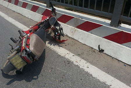 Ghi nhận của PV, giữa cầu vượt sông Nhuệ, cách khu vực phát hiện thi thể nạn nhân khoảng 300m có một chiếc xe máy bị hư hỏng nặng phần đầu. Thân chiếc xe máy và cầu vượt sông Nhuệ xuất hiện rất nhiều vết máu.