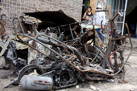 3 chiếc xe máy bị thiêu rụi trơ khung