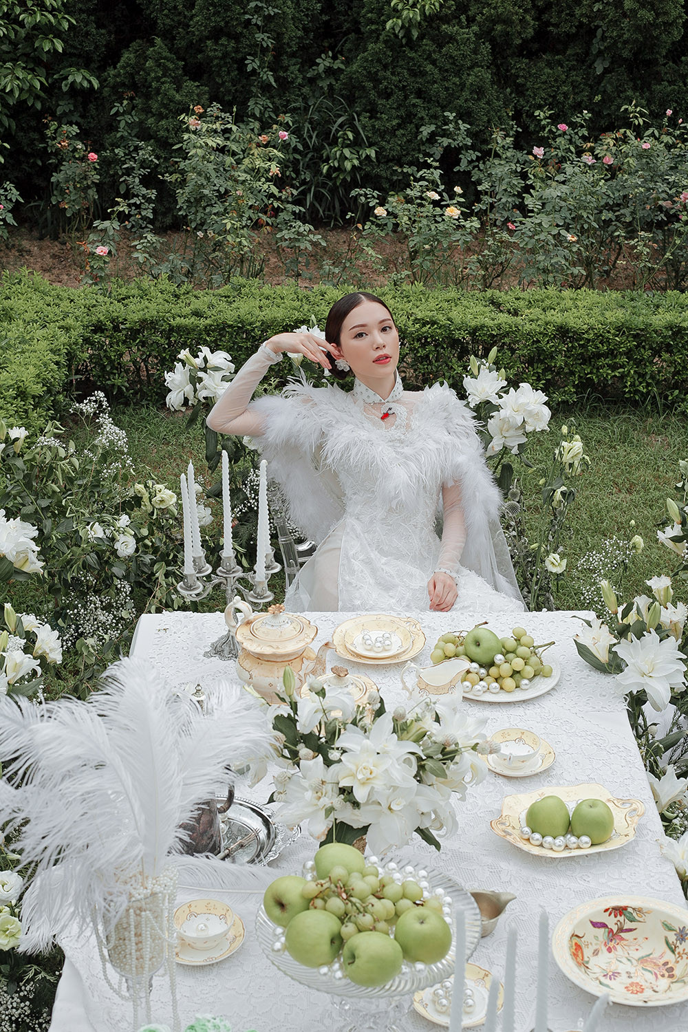 Liên lạc với người đẹp, Linh Rin cho biết đây chỉ là một bộ ảnh thời trang mà cô hợp tác với NTK Kenny Thái. Quá thích thú với concept khu vườn thơ mộng nên Linh Rin đã đồng ý khoác lên mình những mẫu áo dài cưới vô cùng kiêu sa, lung linh.