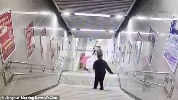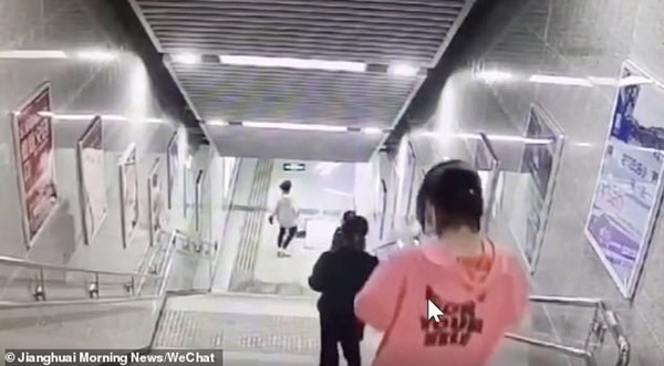 Sự việc xảy ra ở một ga tàu điện ngầm ở thành phố Hợp Phì (Trung Quốc). Cô gái này là một hành khách chuẩn bị lên tàu. Nhưng khi bước đến cầu thang, cô vẫn không hề ngẩng lên nhìn mà chỉ dán mắt vào điện thoại. Thế là tai nạn xảy ra.