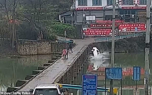 Hồi đầu năm nay, một người ở Quý Châu (Trung Quốc) cũng đã lao chiếc ô tô mới của mình xuống sông trong khi đang lái đi làm. Lý do cũng chỉ vì anh ta vừa lái xe vừa xem điện thoại. Anh này thoát chết do đá bật được cửa xe ra, nhưng cũng bị trật khớp vai.