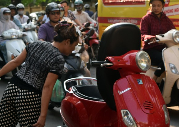 Khoảng 16h45 ngày 18/7, một người phụ nữ điều khiển chiếc xe Vespa LX màu đỏ, rẽ vào đổ nhiên liệu tại cây xăng trên phố Hoàng Hoa Thám (quận Ba Đình, Hà Nội). Sau đó, khi chị này vừa đi tiếp được khoảng 50 m, đến đoạn trước số nhà 51 Hoàng Hoa Thám, bỗng khói trắng nghi ngút bốc lên từ phần cốp xe, kèm theo mùi khét của nhựa cháy.