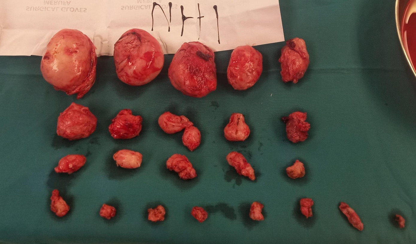Với sự phối hợp nhịp nhàng, tỉ mỉ của cả ê-kip phẫu thuật và sự hỗ trợ tích cực của các bác sĩ Gây mê – Hồi sức trong suốt quá trình mổ, ca mổ được thực hiện thành công. Các bác sĩ đã đón bé gái chào đời an toàn, khỏe mạnh với cân nặng 3,0 kg. Đồng thời loại bỏ được 24 khối u xơ tử cung cho sản phụ N. Trong đó, 2 khối u lớn nhất có kích thước lần lượt là 8x5cm và 7x4cm, các khối u còn lại có kích thước từ 2-4cm).