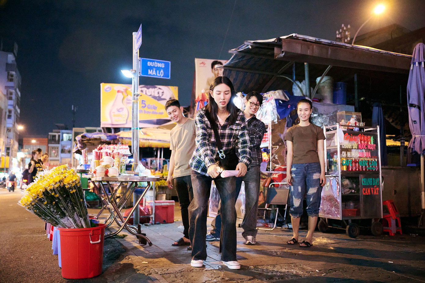 Đây chính là hậu trường ghi hình của Đu đêm - một chương trình thực tế kể về hành trình khám phá TP. HCM về đêm thông qua những trải nghiệm hóa thân thành các nghề nghiệp do Hoa hậu Nguyễn Thúc Thuỳ Tiên thực hiện.
