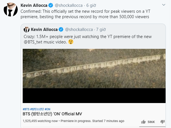 Vui mừng thật đấy nhưng trong cái vui, ARMY cũng có cái lo vì nhìn lượt view hiển thị của MV ON, các ARMY không thể không tự hỏi: "Có chuyện gì xảy ra với YouTube thế này?" Quả thật, sau màn tăng tốc như vũ bão lên mốc 10 triệu view thì tốc độ tăng lượt xem của ON đã chậm lại đôi chút. Sau 5 giờ 10 phút kể từ lúc ra mắt, ON mới chạm mốc 20 triệu view, kém vài phút so với kỷ lục mà MV Boy With Luv đang nắm giữ (5 giờ 3 phút). Tuy nhiên, thời lượng của ON (5'55) dài hơn Boy With Luv (4'13) nên thành tích này cũng rất đáng nể.