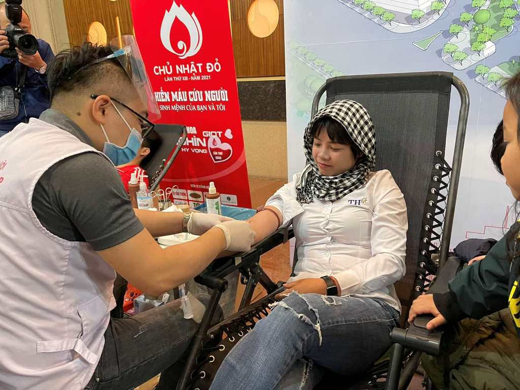 Cán bộ Bộ phận nghiên cứu sản phẩm của Tập đoàn TH lần đầu hiến máu tại Chủ nhật đỏ
