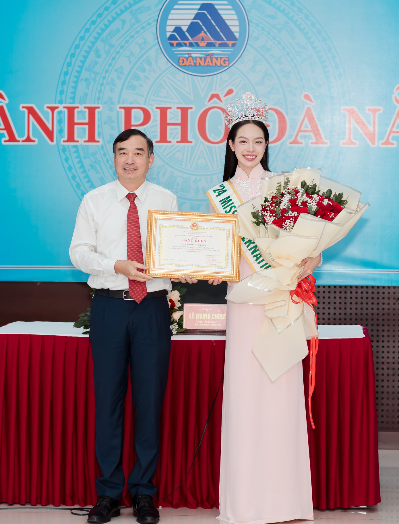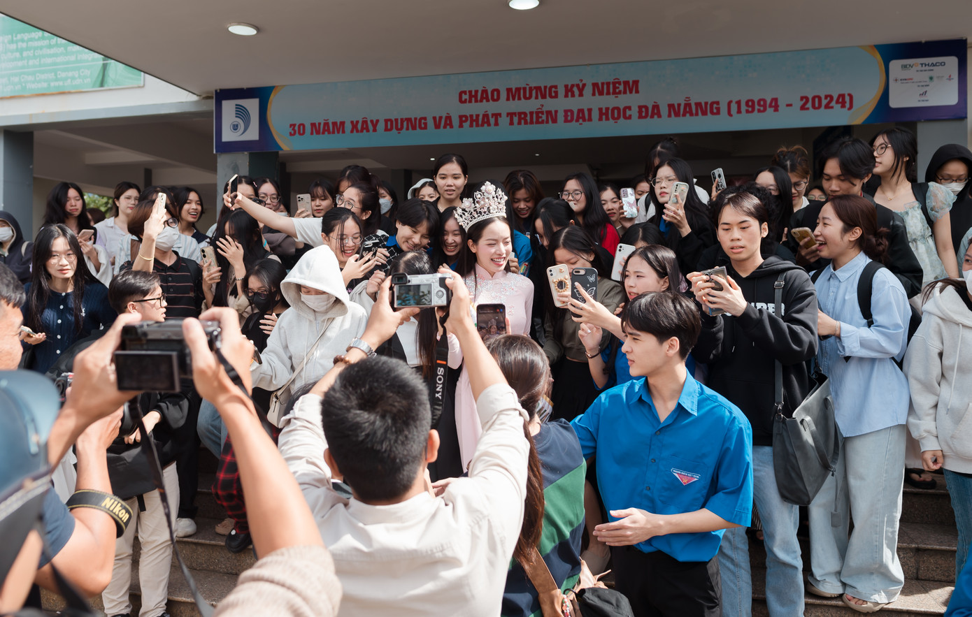 Trường ĐH Ngoại ngữ (ĐH Đà Nẵng) đã tổ chức lễ tuyên dương và khen thưởng sinh viên Huỳnh Thị Thanh Thủy - đương kim Hoa hậu Quốc tế 2024, chào mừng cô trở về quê nhà Đà Nẵng. Sự kiện là dịp đặc biệt để ghi nhận và tôn vinh những thành tích xuất sắc mà Thanh Thủy đã đạt được, không chỉ là niềm tự hào của nhà trường mà còn của TP. Đà Nẵng và cả Việt Nam.