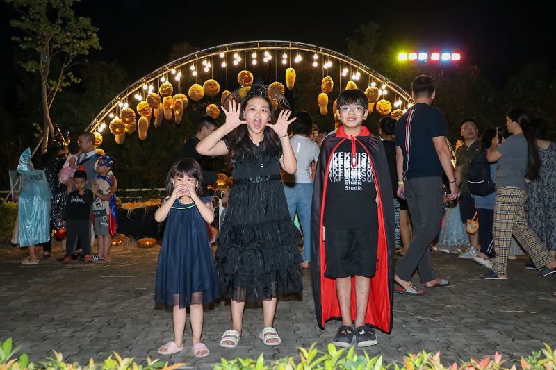 Tương tự, tại Khu đô thị quốc tế Ciputra Hanoi, nơi có tỉ lệ lớn các cư dân quốc tế thì sự kiện này luôn được các gia đình chào đón nhiệt tình với rất nhiều sự hào hứng. Lễ hội Halloween Ciputra 2024 được tổ chức vừa đảm bảo tính gọn gàng thuận tiện, vừa chú trọng làm mới bố cục sắp đặt để tạo nên sân chơi đầy sức hút hấp dẫn lôi cuốn. Phải kể đến dàn đèn bí đỏ lớn treo cao được tạc khắc rất kỳ công từ chính những đôi tay khéo léo của đội ngũ ban quản lý công sản kết hợp với hiệu ứng đèn nến điện tử đã tạo dấu ấn đặc trưng của lễ hội. Khu Joker truyền thống, khu người ngoài hành tinh đóng băng với hiệu ứng đèn mầu khói băng huyền bí, khu đầu lâu hầm mộ bia đá góp phần tạo cảm xúc sống động, hay khu mô hình thuyền cướp biển và những tên cướp biển huyền thoại vốn dĩ thường ngày lạnh lùng nay bỗng nhiên cao lớn lênh khênh và đập tay hi-fi thân thiện với các bé... Điểm tụ tập đông đúc nhất chính là gian hàng phát tặng kẹo bánh, món quà nhỏ dễ thương trong lễ hội Halloween Ciputra thường niên, góp phần cộng hưởng tăng thêm sự hứng khởi vui tươi bừng sáng trên gương mặt các bạn nhỏ.