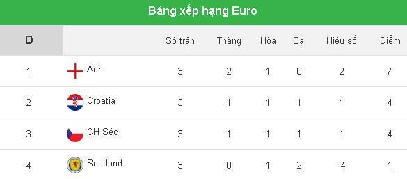 TPO - Trong trận đấu định đoạt tấm vé đi tiếp ở bảng D, Croatia đã vượt qua Scotland 3-1. Chung chuộc, nhà á quân World Cup 2018 chiếm vị trí thứ nhì bảng D do CH Czech thua Anh ở trận đấu cùng giờ.