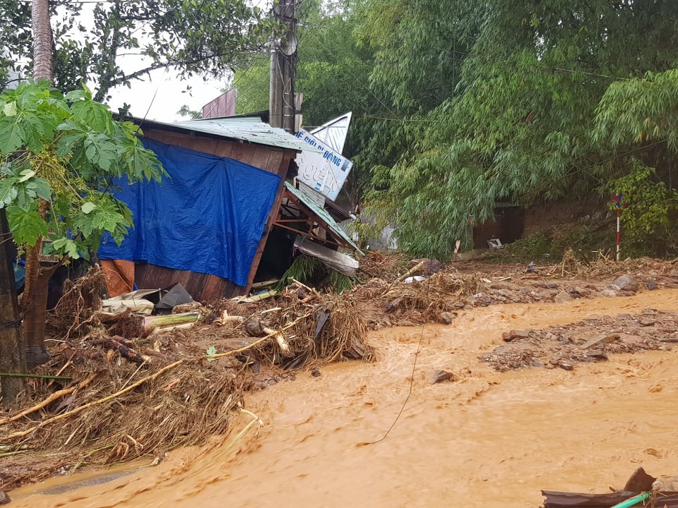 Khoảng 13 giờ 30 phút chiều cùng ngày, một vụ sạt lở núi xảy ra tại khu vực gần trung tâm huyện đã vùi lấp nhiều nhà dân.