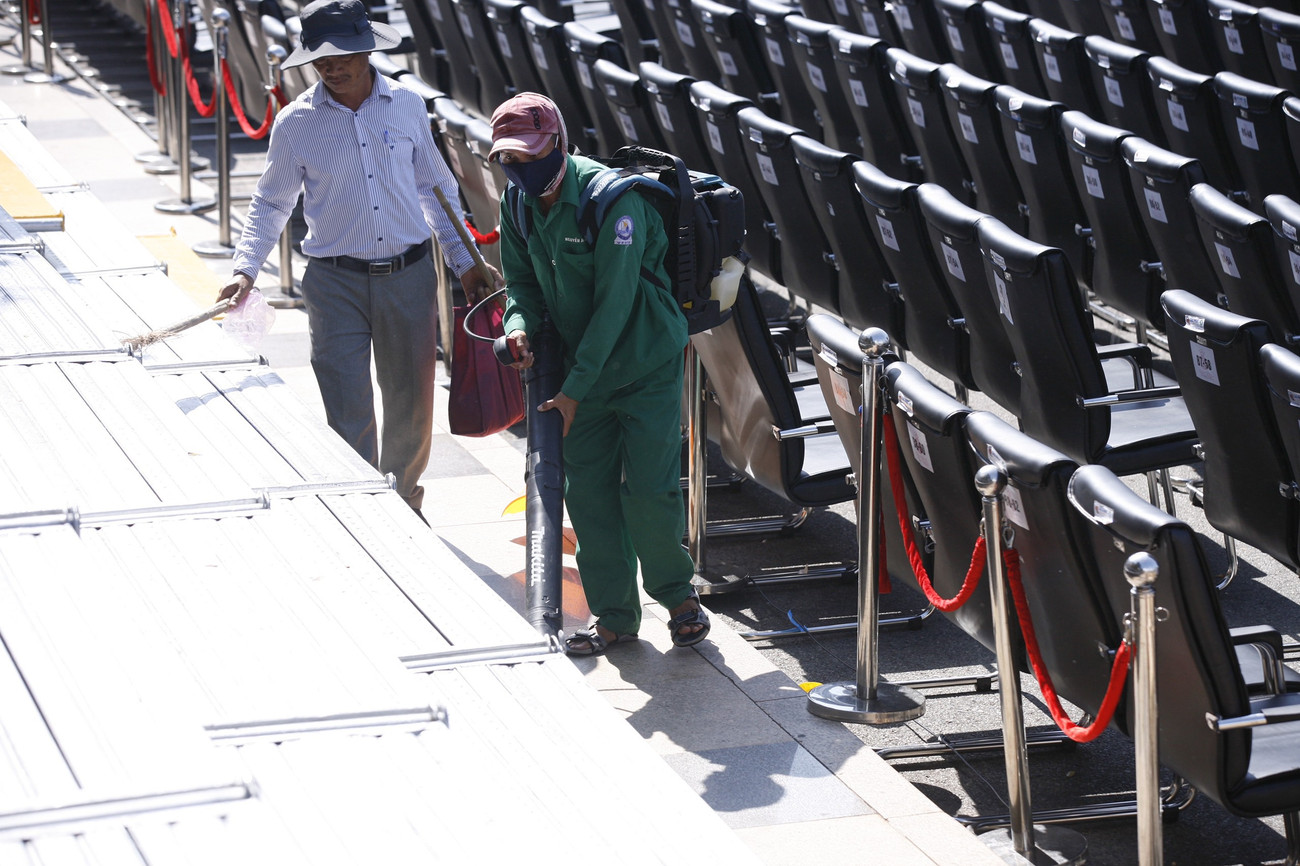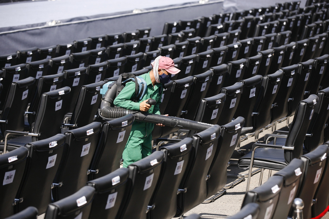 Ngay từ sáng sớm, các nhân viên vệ sinh đã đi hút bụi ở khu vực ghế ngồi để đảm bảo các khách mời sẽ thoải mái nhất khi theo dõi chương trình.