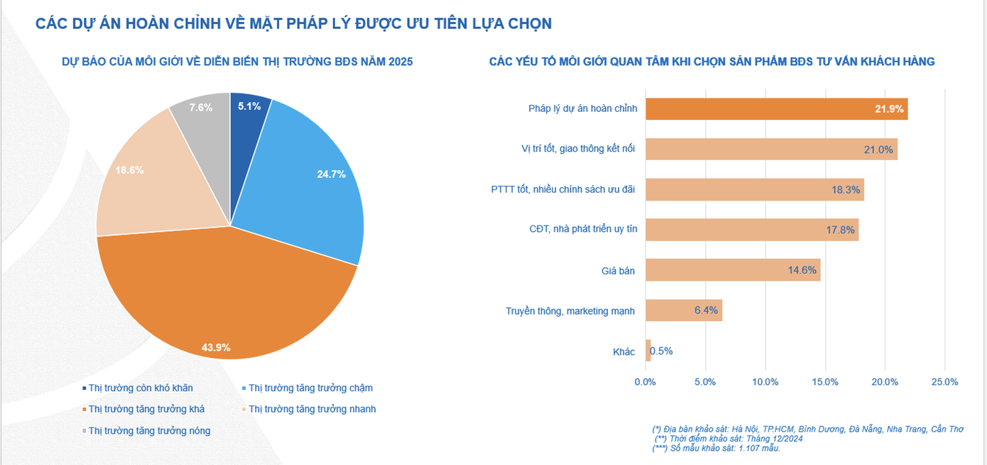Dat Xanh Services - FERI cũng đã khảo sát góc nhìn của cá nhân môi giới - đối tượng trực tiếp tham gia thị trường và làm việc với hầu hết với các bên liên quan của thị trường về dự báo diễn biến tăng trưởng thị trường bất động sản năm 2025.