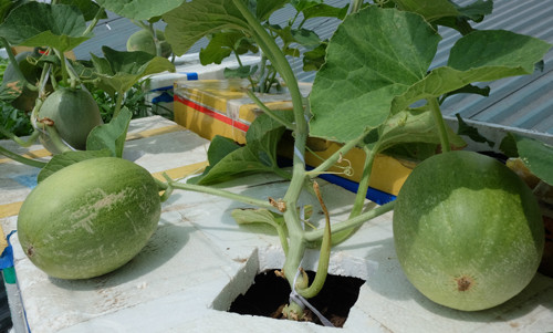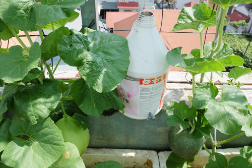 Khác với các cây leo như bầu bí, mướp, bộ rễ của dưa ít hơn nên không cần quá nhiều đất. Mỗi cây được trồng trong một thùng xốp cỡ lớn. Chủ vườn đậy nắp phía trên bề mặt để chống sâu bệnh và giữ đất được ẩm.