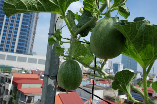 Ngoài các loại rau thông thường, trong vườn nhà chị ấn tượng nhất là những cây dưa, quả to đều. Chị Thu cho biết, những trái dưa do nhà trồng có cảm giác ngon ngọt hơn mua ngoài chợ.