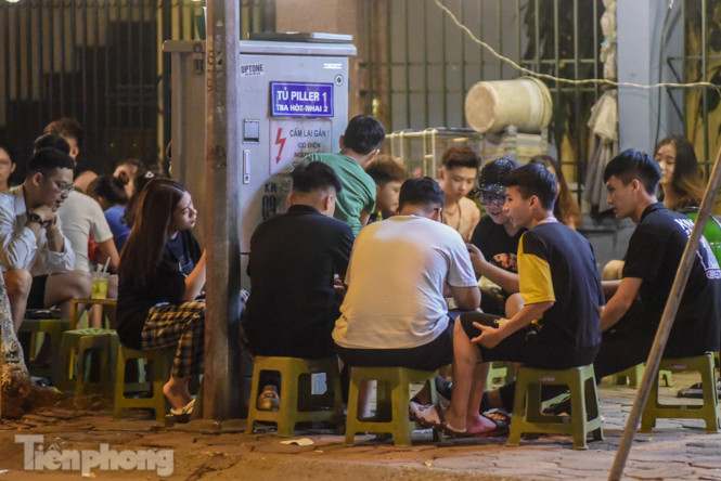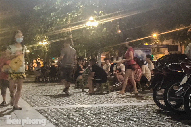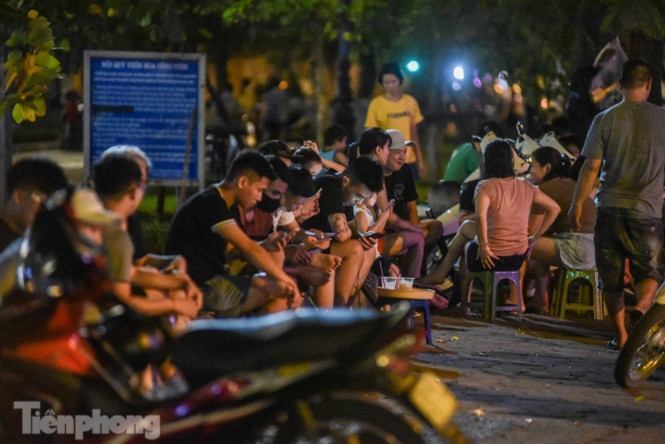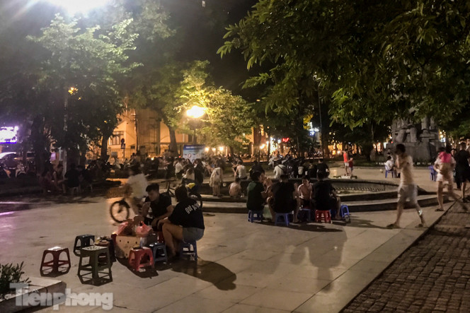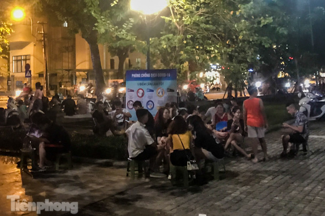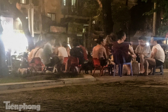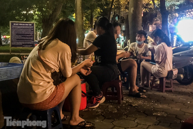 Tại vườn hoa Hàng Đậu thuộc phường Quán Thánh (quận Ba Đình, Hà Nội), các quán trà đá vỉa hè vẫn hoạt động tràn lan, đặc biệt vào buổi tối từ 21-23h trong khi dịch COVID-19 vẫn diễn biến phức tạp.