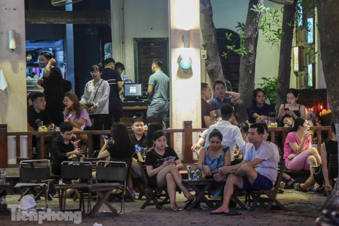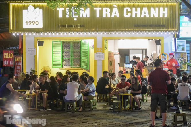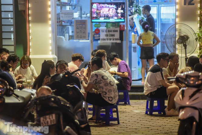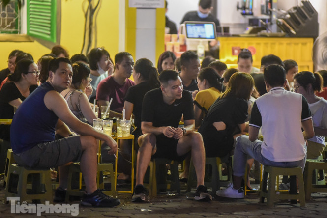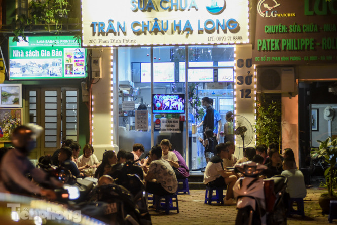 Tại các cơ sở kinh doanh như trà chanh, sữa chua trân châu trên đường Phan Đình Phùng, Quán Thánh (gần bốt Hàng Đậu) khen đặc khách, ngồi tràn lan ra vỉa hè vào buổi tối, không tuân thủ quy định giãn cách từ 1m trở lên theo yêu cầu của UBND thành phố Hà Nội.