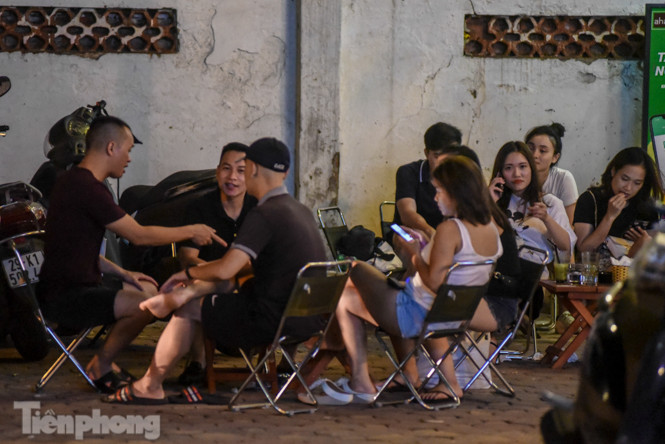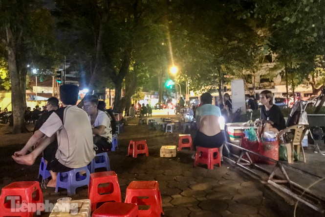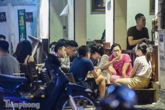 Ghi nhận của PV trong ngày 25-26/8, tại vườn hoa Hàng Đậu thuộc phường Quán Thánh (quận Ba Đình, Hà Nội), các quán trà đá vỉa hè vẫn hoạt động nhộn nhịp, đặc biệt vào buổi tối từ 21-23h, thu hút khá nhiều khách, đặc biệt là giới trẻ.