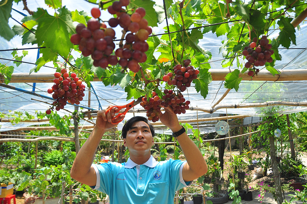 Anh Phan Thanh Cần chăm sóc nho