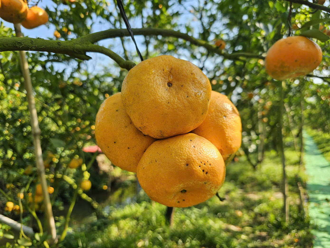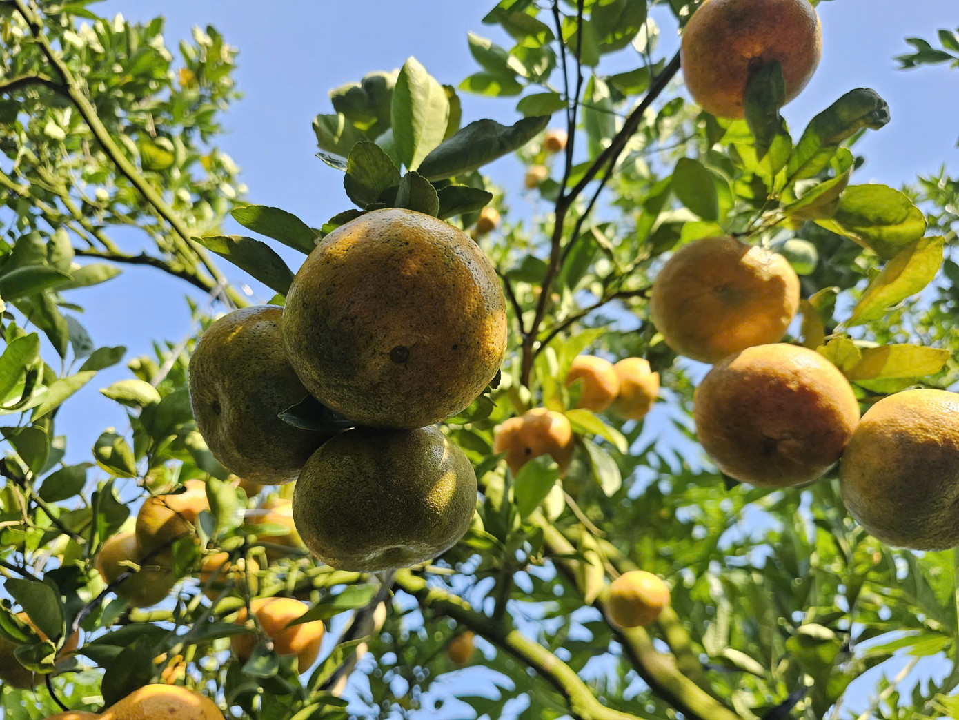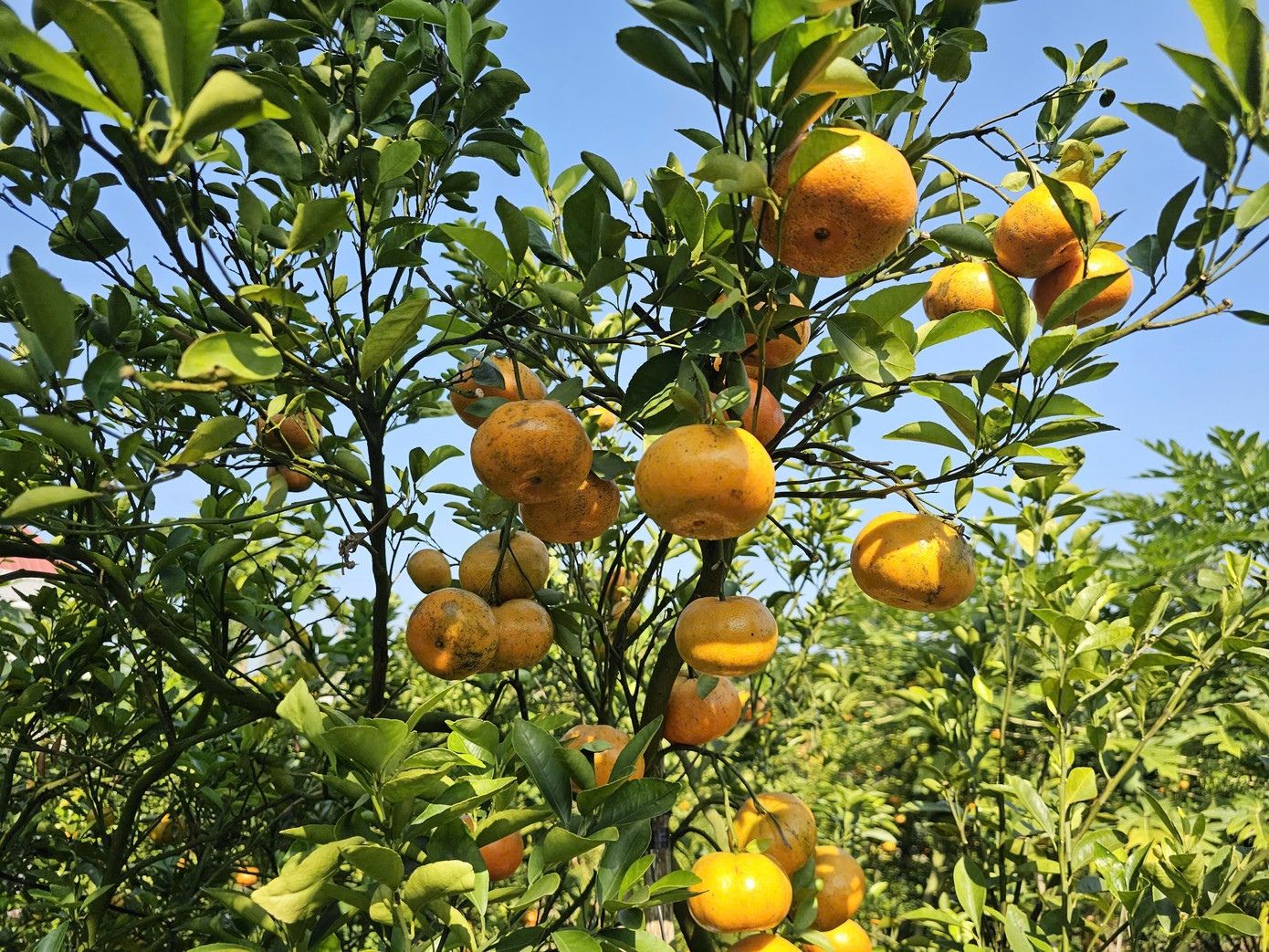 Năm nay mặc dù thời tiết bất lợi từ đầu vụ do nắng nóng kéo dài, hoặc có khi mưa nhiều làm rụng bông hoặc nứt trái, ảnh hưởng đến năng suất, tuy nhiên, nhờ kỹ thuật canh tác tốt, cây cho trái sum suê, trĩu quả để phục vụ thị trường Tết Nguyên đán Ất Tỵ 2025.