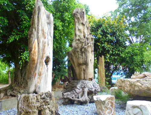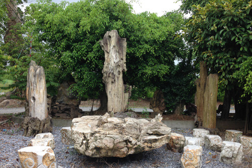Bộ bàn ghế từ đá và gỗ cây hóa thạch