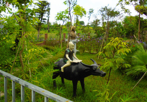 Phong cách của khu vườn này lại mang đậm nét truyền thống Việt Nam với những bức tượng sinh động: Thị Nở, Chí Phèo, ngư ông,