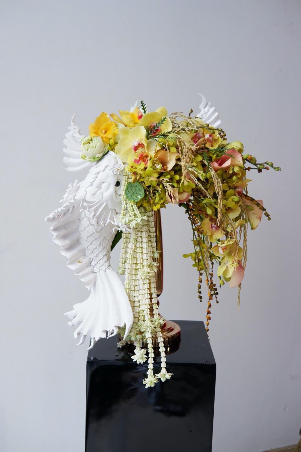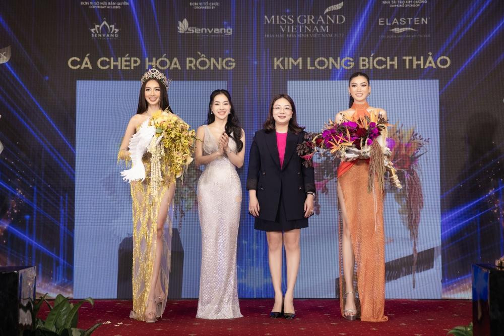 Miss Grand Vietnam 2022 còn nhận được hoa đăng quang. Bó hoa với tên gọi độc đáo Cá Chép Hóa Rồng lấy chất liệu thân thuộc trong văn hóa truyền thống Việt Nam. Kết hợp hài hòa giữa bông lúa nước và hoa sen, thiết kế của mẫu hoa mang nhiều tầng nghĩa, đại diện cho sự ấm no, hòa bình và hạnh phúc.