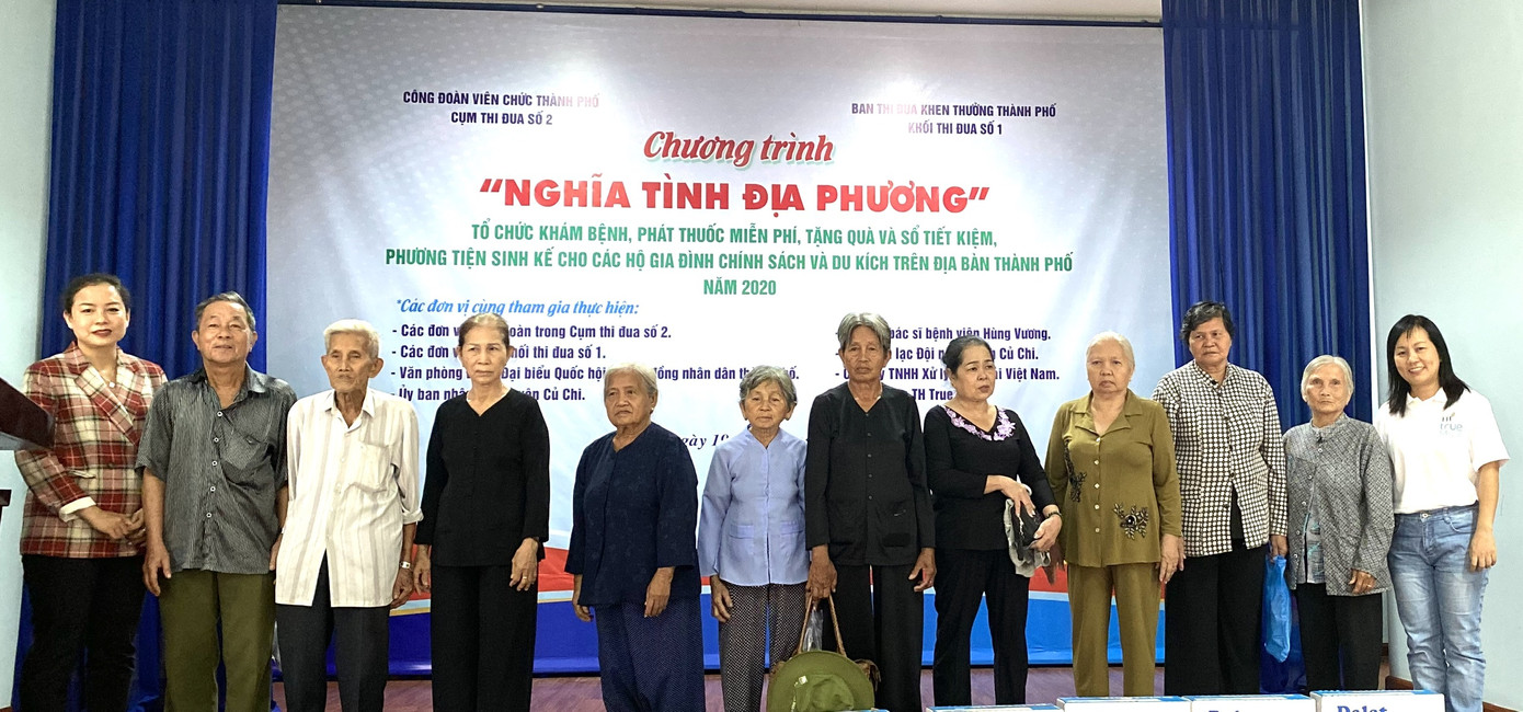Chương trình tổ chức khám bệnh, phát thuốc miễn phí, tặng quà và sổ tiết kiệm, phương tiện sinh kế cho 200 gia đình chính sách tiêu biểu, thành viên đội nữ du kích Củ Chi trên địa bàn TPHCM. Chương trình còn tặng 15 phần quà cho gia đình mẹ Việt Nam Anh hùng, gia đình chính sách tiêu biểu, gia đình nữ du kích Củ Chi.