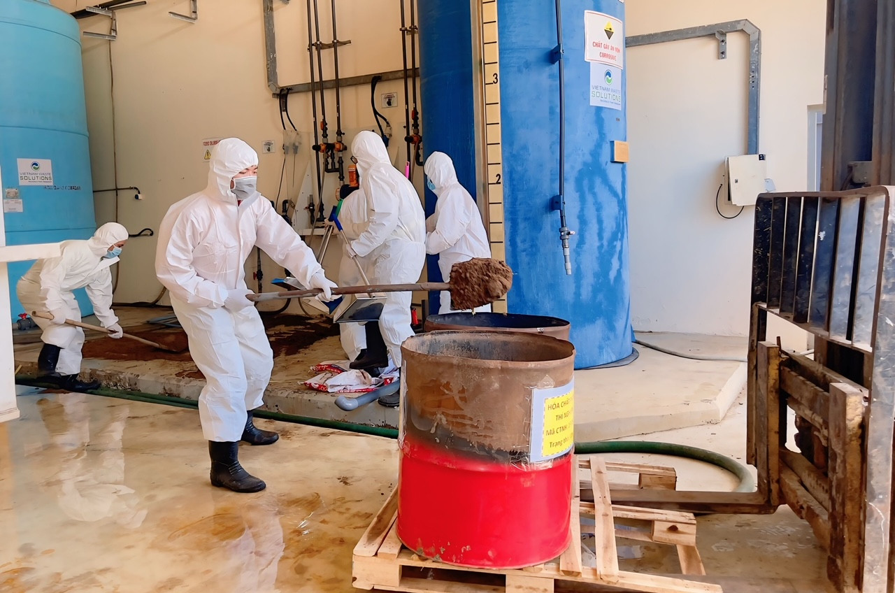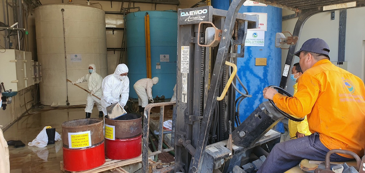 Ngay khi nhận được báo cáo, Chỉ huy đội ứng phó sự cố của Công ty VWS đã chỉ huy và điều động các đội phòng cháy chữa cháy, ứng phó sự cố, y tế và bảo vệ để cứu người bị nạn và triển khai đội hình ứng phó sự cố hóa chất; còn đội y tế và đội chữa cháy chuyên ngành tiếp cận hiện trường, dùng cáng đưa nạn nhân, thực hiện sơ cấp cứu, hồi tỉnh và chở nạn nhân đến trạm y tế gần nhất. Đồng thời, đội ứng phó sự cố hóa chất chia làm 4 nhóm, thực hiện đúng các thao tác và quy trình xử lý sự cố đến khi đảm bảo khu vực đã an toàn.