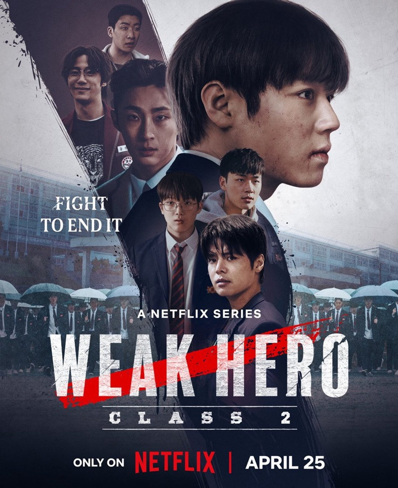 Bộ phim truyền hình đề tài học đường Hàn Quốc Weak Hero Class 2 (Người Hùng Yếu Đuối/ Anh Hùng Yếu Ớt) lên sóng Netflix vào ngày 25/4/2025 đã nhanh chóng phủ sóng rộng khắp. Chỉ sau một ngày công chiếu, Weak Hero Class 2 đã xếp thứ 2 trên BXH toàn cầu ở hạng mục phim truyền hình của Netflix.