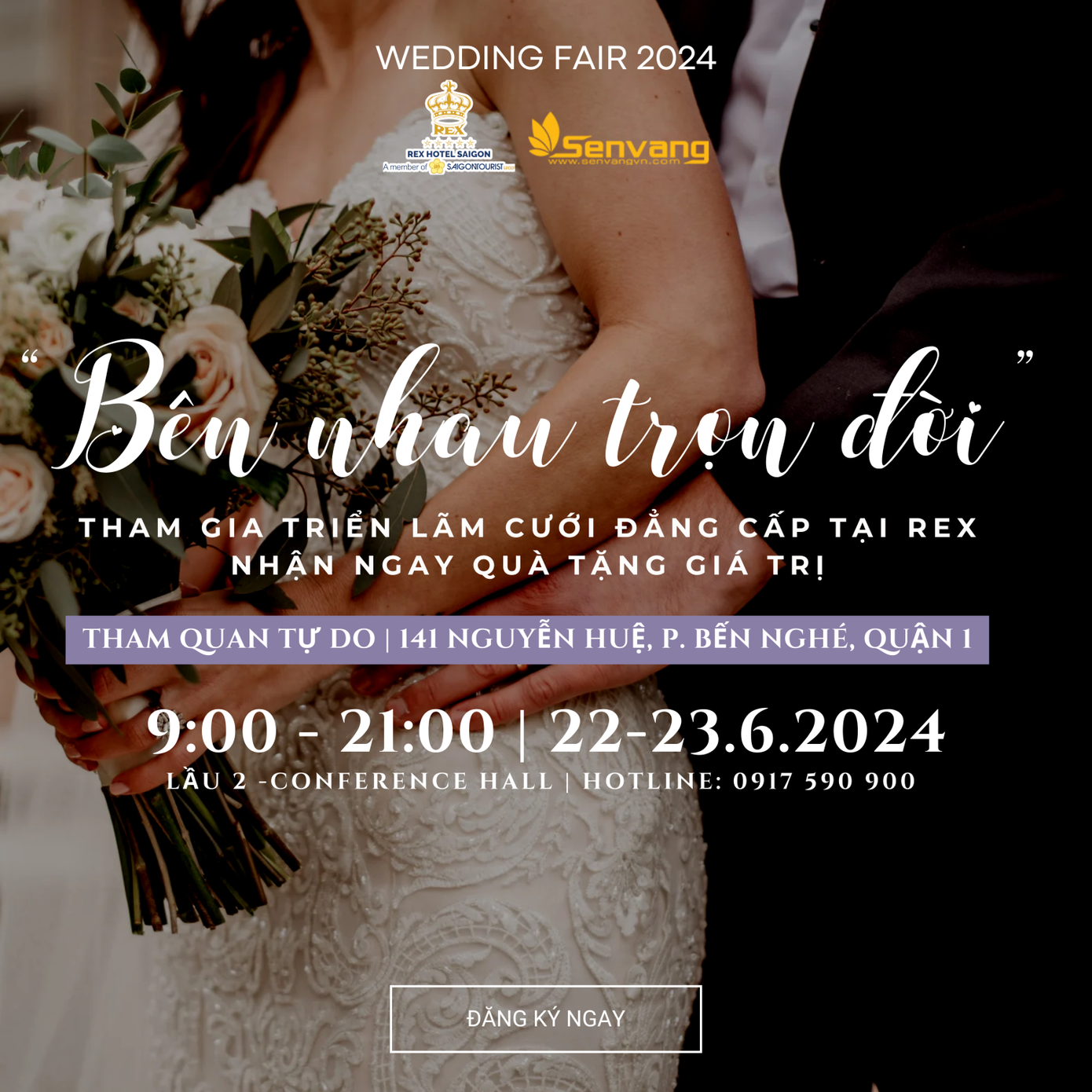 Hãy đến ngay “Triển lãm cưới - REX HOTEL SAIGON” để có thêm ý tưởng thiết kế hành trình hạnh phúc và gặp gỡ các chuyên gia tư vấn thật chu đáo.