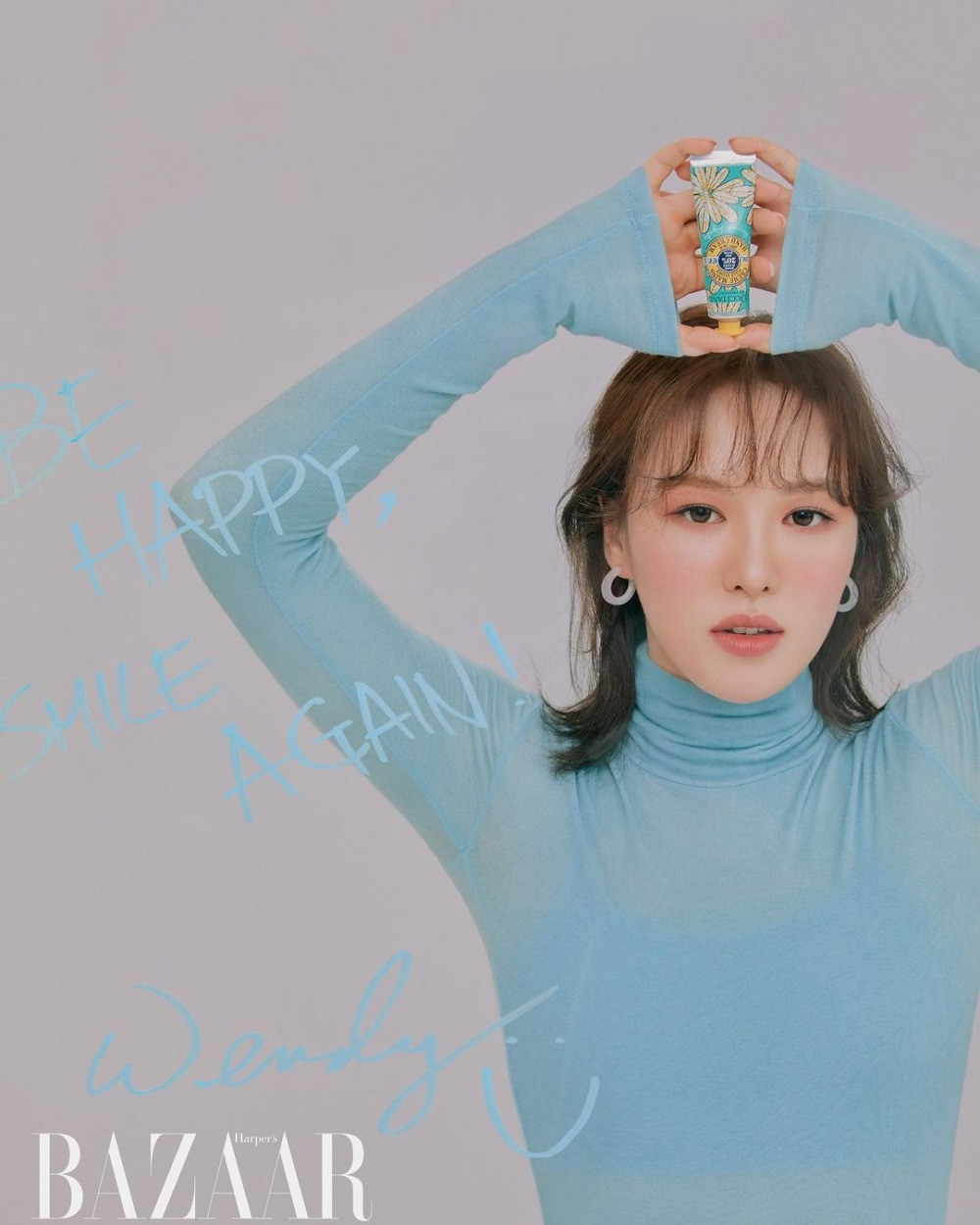 Trong loạt ảnh mới, Wendy quảng cáo cho hãng mỹ phẩm thiên nhiên danh tiếng của Pháp L’Occitane. Cô mặc đồ gam màu pastel nhẹ nhàng bay bổng, trang điểm nhẹ nhàng, đẹp như “tiên tử”.