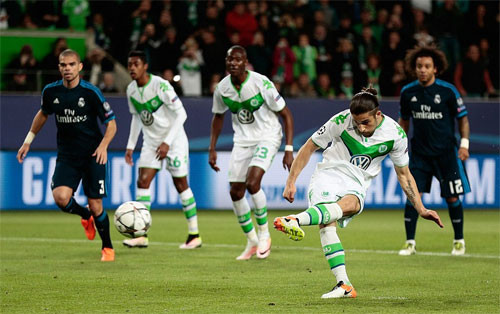 Tới làm khách trên sân của một trong hai đội bóng bị đánh giá thấp nhất tại vòng tứ kết, Real không ngờ vấp phải thất bại cách biệt nhất trong loạt trận lượt đi. Hậu vệ Ricardo Rodriguez và tiền đạo Maximilian Arnold thay nhau ghi hai bàn trong 25 phút đầu, đồng thời sớm ấn định chiến thắng cho Wolfsburg. Trong khoảng thời gian còn lại, Real thi đấu nỗ lực nhưng không thể vượt qua hàng thủ đội bóng Đức và thủ môn Diego Benaglio.