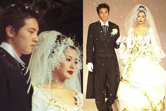 Won Bin từng trình diễn váy cưới trong show của nhà thiết kế Andre Kim cùng "nữ hoàng sắc đẹp" Kim Hee Sun nhiều năm về trước.