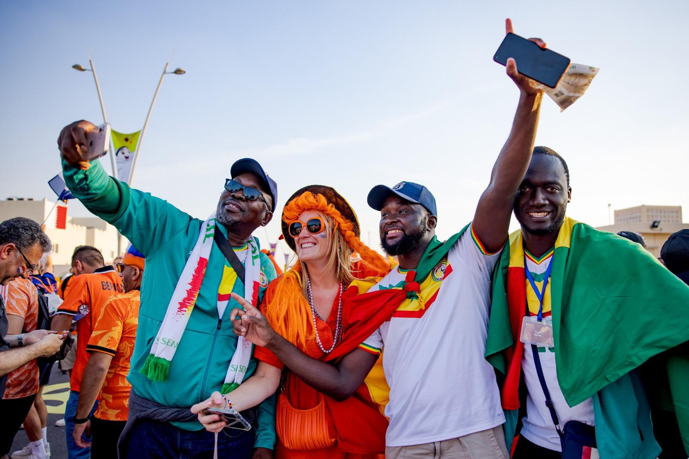 Các CĐV Hà Lan tụ tập, khuấy động không khí từ bên ngoài đến vào trong sân Al Thumama.