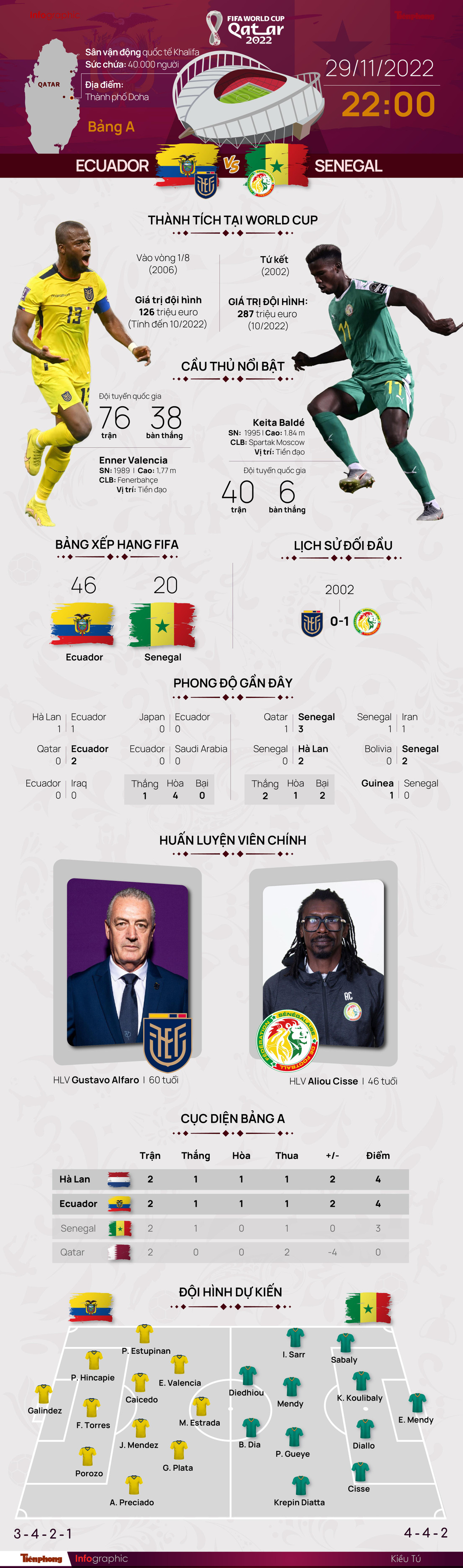 Google News World Cup 2022: Tương quan trước trận Ecuador - Senegal, 22 giờ 29/11