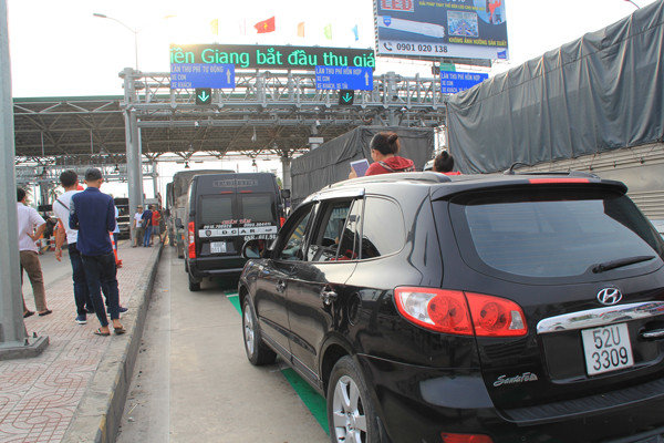 Cảnh ùn tắc tại BOT Cai Lậy trong ngày thu phí trở lại