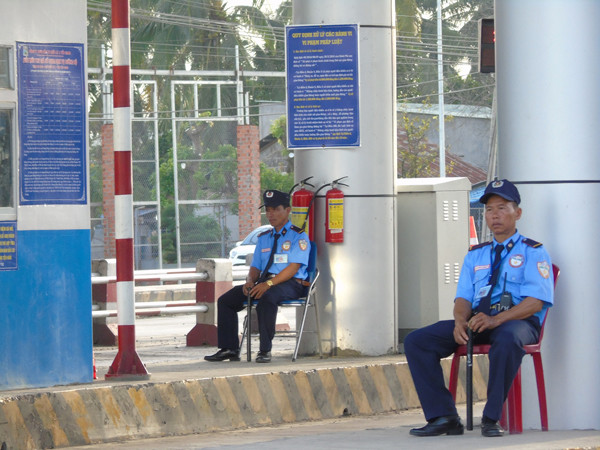Mỗi chốt một bảo vệ ngồi canh giữ. Ảnh: Kim Hà.